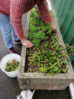 Ces moments de rencontre, suivis d’un moment convivial autour d’un café ou d’un thé, sont aussi l’occasion d’identifier ce qui pousse sur le terrain : soucis, lin, roses trémières… et de semer des petites graines récoltées dans les jardins des uns et des autres.